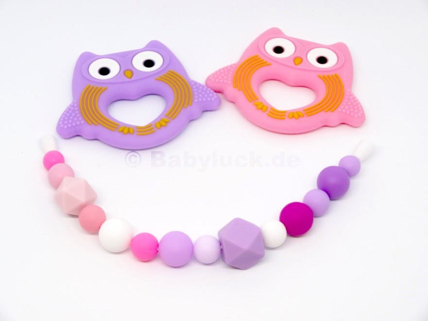 Dieser Greifling ist mit bunten Perlen in Pink- und Lilatönen sowie einem Eulen Beißanhänger ausgestattet, dessen Flügel mit Noppen überzogen ist. Auch die Rillen bieten jede Menge zu Entdecken. Die leuchtenden Farben und der lustige Beißanhänger bieten deinem Kind Anregung zum Spielen und fördern durch die unterschiedlichen Formen auch die Feinmotorik.